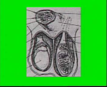 The testicle internal structure, its outside by a tenacious organization package, is called 白膜, has protects the testicle the function. 白膜 the accumulation and extends to inside, separates the testicle many cabs, these slightly separate is called the mediastinum testis, the cab is called the testicle small leaf. The normal man generally had 200 ~ 300 small leaves, inside the small leaf has filled the testicle essence, produces spermatozoon's place, was called 曲细精管. If cuts the testicle essence takes a scrap to set under the microscope observes, may see 曲细精管is a strip thin pipe.