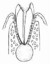 图3-29 根端囊肿 【临床表现】 根端囊肿呈球形膨胀、缓慢生长。一般无明显自觉症状。囊肿逐渐增大,可影响颌骨和牙齿。如颌骨骨质因受压而吸收、皮质层变薄,向外膨隆,触诊时有“乒乓球”样弹性感。邻近牙齿可被挤压而移位或倾斜。穿刺检查可抽出淡黄色水样囊液。如并发感染,则出现炎症症状。X线检查有助于诊断。片中显示圆形椭圆形边缘整齐的透射区、与牙根相连。 【治疗】 主要采用手术摘除囊肿。一般在口内作切口,翻起粘膜骨膜瓣,去除部位骨壁,暴露囊肿,将囊肿摘除(图3-30)。根据病源牙情况,拔除或作牙髓治疗。