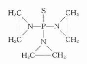 噻替派(thio-tepa,triethylenethiophosphoramide,TSPA)结构中含三个乙撑亚胺基,能形成有活性的碳三离子与细胞内DNA的碱基结合,影响瘤细胞的分裂。其选择性较高,抗瘤谱较广,主要用于乳腺癌、卵巢癌、肝癌和恶性黑色素瘤等,对骨髓有抑制作用,引起白细胞和血小板减少,但较氮芥轻。胃肠道反应少见,局部刺激小,可作静脉注射、肌内注射及动脉内给药与胸(腹)腔内给药。