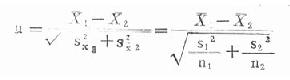(一)u检验 可用于两样本含量n1、n2、均足够大时,如均大于50或100。