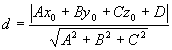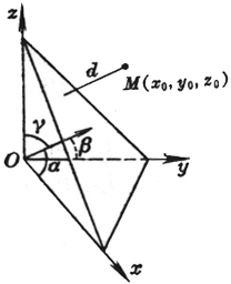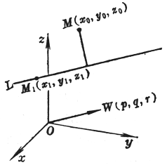 式中d为点M(x0, y0, z0)到直线L的距离,ijk为三个坐标轴上的单位矢量,最外面的符号“| |”表示矢量的模