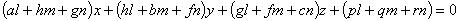 l,m,n变动时,这个方程表示一个平面把,由此二次曲面的直径平面组成一个平面把.把内任一平面都通过下列三个平面的交点: