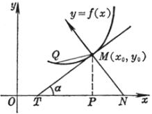 [曲线的切线与法线] 当曲线上的点Q趋于M,割线MQ的极限位置称为曲线在点M处的切线,通过点M并垂直于切线的直线称为法线.切线的正向就是曲线在切点处的正向,法线的正向就是切线的正向按逆时针方向旋转90°而得到的方向.
