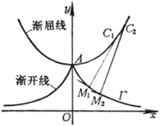 渐屈线  曲线G 上的每点的曲率中心的轨迹C称为曲线G 的渐屈线,也称为曲线G 的法包线(即曲线的法线的包络线)
