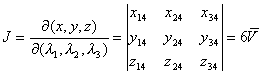 [型函数]    就是体积坐标(i=1,2,3,4),它们与直角坐标之间的线性关系式为