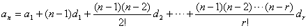 (1)r阶等差数列,并设d1(1)的第一次差构成的数列的首项,d2(1)的第二次差构成的数列的首项,...,dr(1)的第r次差构成的数列的首项,则有