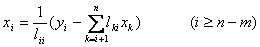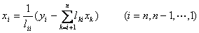 xn代入第n个方程,解出,再将 xn代入第n个方程解出...,最后将已解出的x2x3...xn代入第一个方程解出x1.