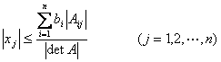这里Dj(j=1,2,...,n)是以常数项矢量b替换A中第j列矢量后得到的n阶行列式.特别