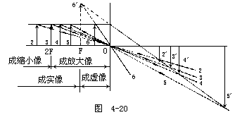 【物和像】 人们能感觉到物,是由于物体各点所反射的光,经过人眼这个光学系统(相当一个焦距可调的凸透镜)成像于视网膜上,再由视神经传到大脑而造成视觉,从光学的角度讲,物点是发散光束的顶点,所以物就是由这些发散光束顶点的组合而成。如果光束经不同媒质的界面反射或折射以后,光线的方向虽然改变了,但反射光线或折射光线所构成的光束仍然有一个顶点“P′”,这个顶点P′就叫做像点,在这种情况下,每个像点和物点间建立了一一对应的关系。这些像点的组合就是像。如果光束中各光线确实在某点会聚,那么该会聚光束的顶点叫做实像;如果光束经界面反射或折射后是发散的,但这些光线反向延长后,能够找到光束的顶点,则该发散发束的顶点叫做虚像。物和像则是这些光束顶点的集合。在空间中的物,它向所有方向反光,眼睛无论在何处,只要找对方向都可以看到物。像则不然,因为平面镜或透镜的反射或折射的光束不是向所有方向,光束总是局限在一定的范围内。如果人眼恰处于光束所在的范围内,便可看到像,但是当眼睛位于反射或折射光束的范围之外时,眼睛是看不到像的。因为这些光束不能进入人的眼睛。
