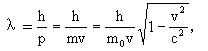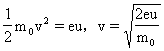 再如,电子经电场加速(加速电位差为u)后,电子的速度将由关系式