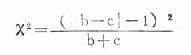 从表中资料可见有四种结果:(a)甲+乙+,(b)甲+乙-(c)甲-乙+,(d)甲-乙-;如果我们目的是比较两种培养基的培养结果有无差异,则(a)、(d)两种结果是一致的,对差异比较毫无意义,可以不计,我们只考虑结果不同的(b)和(c),看其差异有无意义,可以应用以下简易公式计算: