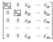 2)在除第1行外的系数矩阵中找出主元素,不妨设b22为主元素.再将第二个方程乘以分别与第i个方程相加(i=3,4,...n),得到新的n阶线性方程组,用矩阵表示如下