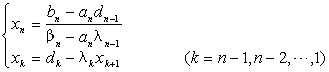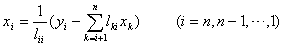 xn代入第n个方程,解出,再将 xn代入第n个方程解出...,最后将已解出的x2x3...xn代入第一个方程解出x1.