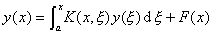 这是一个第二类沃尔泰拉方程,核K是x的线性函数。