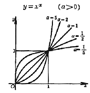 曲线通过点(0,0)和(1,1);当x>1a 越大曲线上升越快.