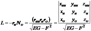 式中EFG为曲面的第一基本量,LMN为曲面的第二基本量。