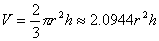 r为球半径,a为弓形底圆半径,h为拱高,为锥角(弧度)