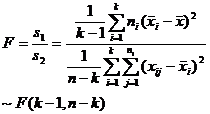 Explanation: If the value of 1 °  is larger, take it as a constant, then use it instead to carry out the above calculation, and the analysis result will not change. 2 ° The between - group variance S1 reflects the systematic error caused by different levels of factor A , while the within-group variance S2 is the within - group difference caused by random factors. If the effects of different factors A i are similar, the ratio of the between-group variance to the within-group variance is small, then it can be considered ; if the effects of different factors A i are significantly different, the ratio of the between-group variance to the within-group variance is larger, it cannot be considered .