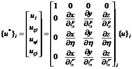 [ Transformation of node parameter values ] The node parameter values  ​​contain partial derivatives , and their values ​​in the Cartesian coordinate system and the local coordinate system are different . For example , the node parameter values ​​in the Cartesian coordinate system
