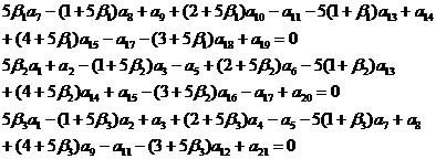 Considering the restriction of the remaining two sides = 0 , = 0 , the other two equations can be obtained in the same way . After simplification , the three equations can be written in the following form