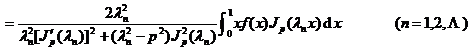 3 o If it is continuous everywhere on [0, 1] except for a finite number of discontinuous points of the first kind and is segment-wise differentiable, then its Fourier - Bessel series converges at that time, and at the continuous points, the series The sum equals , at the discontinuity, the series sum equals ;![]()