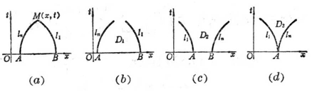 1° 第一边值问题(广义柯西问题) 设在平面(x,t)上给定曲线段