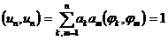 where a k is an undetermined constant, substitute u n into u in the equation Au=f , and take the inner product of both ends with j ( j =1,2, … , n ) to obtain n algebraic equations of a k