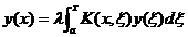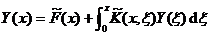 Set on a finite interval or square, the continuous functions F ( x ) and K ( x, ξ ) satisfy
