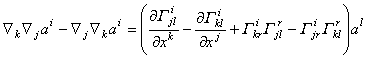 [曲率张量与李奇公式] 张量的协变导数与普通导数的明显区别是:求高阶导数时,张量导数的结果一般与求导的次序有关.例如,运算