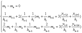 式中是待定参数。这样定义的函数S(x)在区间上满足三次样条函数的条件(i)和(ii),而且S(x)上有连续的一阶导数,同时