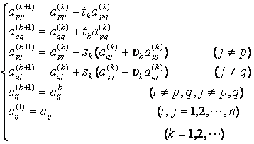 式中I为单位矩阵,tk为适当选定的常数,Ui为雅可比旋转矩阵:
