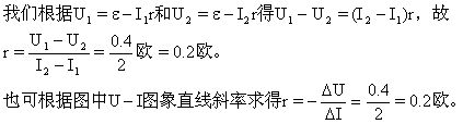 例如,电源对外电阻供电,当外电阻R减小使端电压减小0.4伏,电流I增大2安.我们可由此求出电源内电阻r.