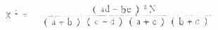 式中a、b、c、d为四格表中的实际频数,N表示总例数(即N=a+b+c+d)。 现仍以表3.5资料为例,先写成四格表形式,如表3.8。 表3.8 四格表求χ2值专用公式的符号