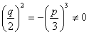 =0时,有三个实根,当p=q=0时,有一个三重零根;当