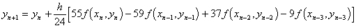 阿达姆斯方法可以单独采用外推公式计算,每算一个yn+1,只要计算一次f(x,y)的值,计算量比龙格-库塔法小,而截断误差同阶,所以计算量小是外推法优点之一.缺点是前几个yi值不能用此法计算,计算y1 ,y2 ,y3需采用其他方法(一般可用龙格-库塔法).