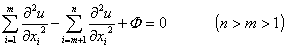 (iii)   特征根都不为零,有个具有同一种符号(n>m>1),其余m个具有另一种符号,称方程在点P为超双曲型.