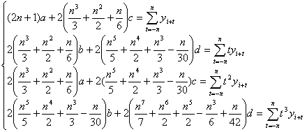 式中t[0,m]中最靠近i2n+1个整数值。当同时成立时,系数a,b,c,d满足下列方程组: