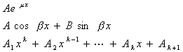 表中右栏表达式分别是(自上而下)在不是其特征根的情形下的特解的待定表达式;如果它们是特征方程的重根,那末在表中的表达式上再乘以.