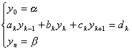这是一种特殊形式的线性代数方程组,除了可用消元法,迭代法等求解外,还可用更简便有效的方法—追赶法(见第四章, §3).