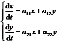 At this time, the stability of the equilibrium point x ≡ 0, y ≡ 0 of the linear equation system can be discussed in the following cases .